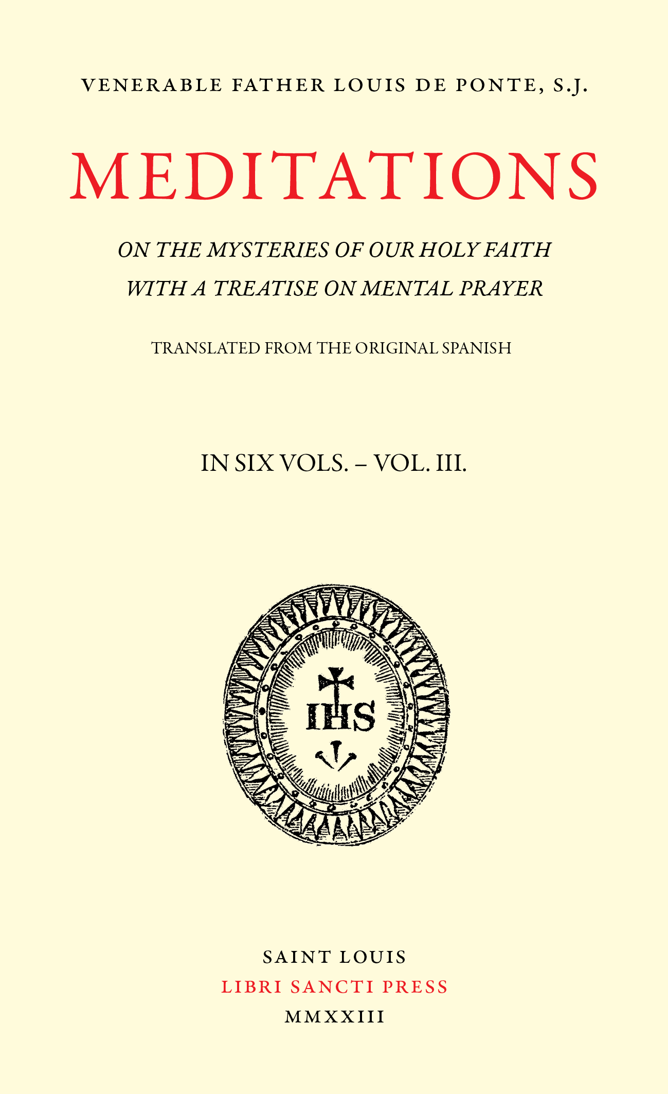 Venerable Father Louis de Ponte, S.J. lived to be one of the most esteemed ascetical writers of the sixteenth and seventeenth centuries. He was born in Valladolid Spain, on 1554. He died a holy death in the same city on the 16th of February 1624, having completed his seventieth year. His cause of beatification was introduced in 1667; all his writings pontifically approved in 1714; and his virtues declared heroic in 1759 by Clement XIII. He spent a great part of his priestly life exclusively devoted to the spiritual formation of younger Jesuits, either as master of novices or as spiritual father. Through his personal experience of labouring in the lord's vineyard, he learned how to direct souls. Leading them in prayer and showing them how to seek God.